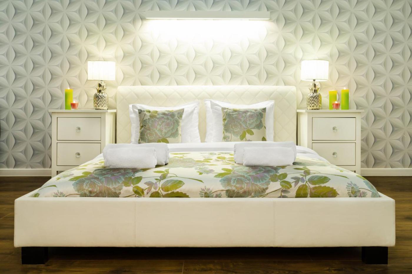 Apartament. The hot tub and sauna are the standout features of this apartment. Boasting a private entrance, this air-conditioned apartment comes with 4 bedrooms and 2 bathrooms with a hairdryer. The apartments kitchen is available for cooking and storing food. Featuring a balcony with garden views, this apartment also features a washing machine and a flat-screen TV. The unit has 4 beds. Apartament - 8 osobowy.