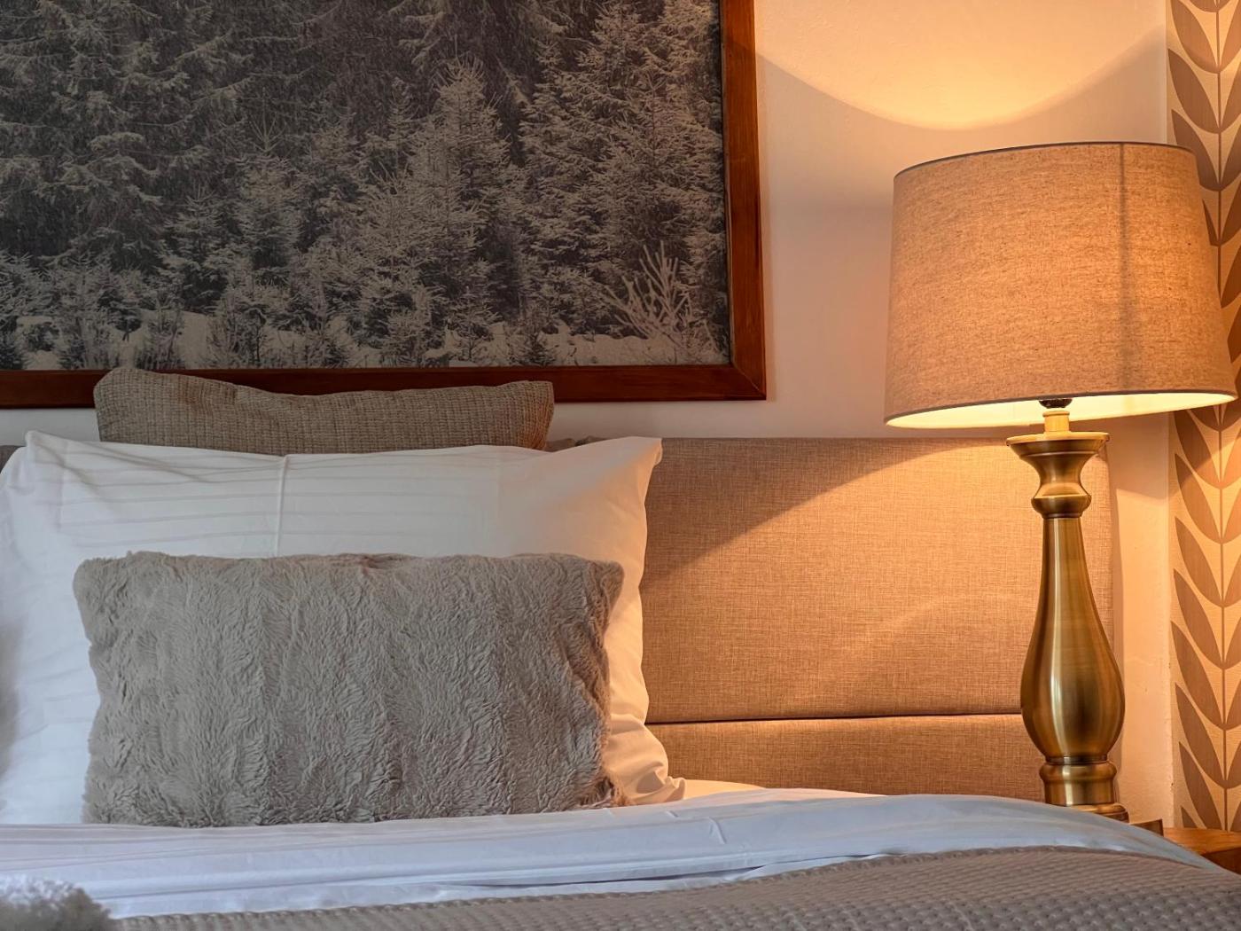 Wyposażenie kuchni obejmuje lodówkę, mikrofalówkę, płytę kuchenną, a także ekspres do kawy i czajnik.