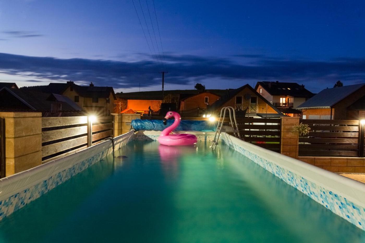 Apartament. This apartments standout features are the pool with a view, hot tub and sauna. Boasting a private entrance, this apartment includes 1 living room, 1 separate bedroom and 1 bathroom with a walk-in shower and a hairdryer. Guests will find a stovetop, a refrigerator, kitchenware and a microwave in the kitchen. The apartment also features a barbecue. The apartment offers a tea and coffee maker, a seating area, a dining area, a flat-screen TV with cable channels, as well as garden views. The unit has 3 beds. Apartament - 5 osobowy. Powierzchnia pokoju ok.: 30 mkw. ;